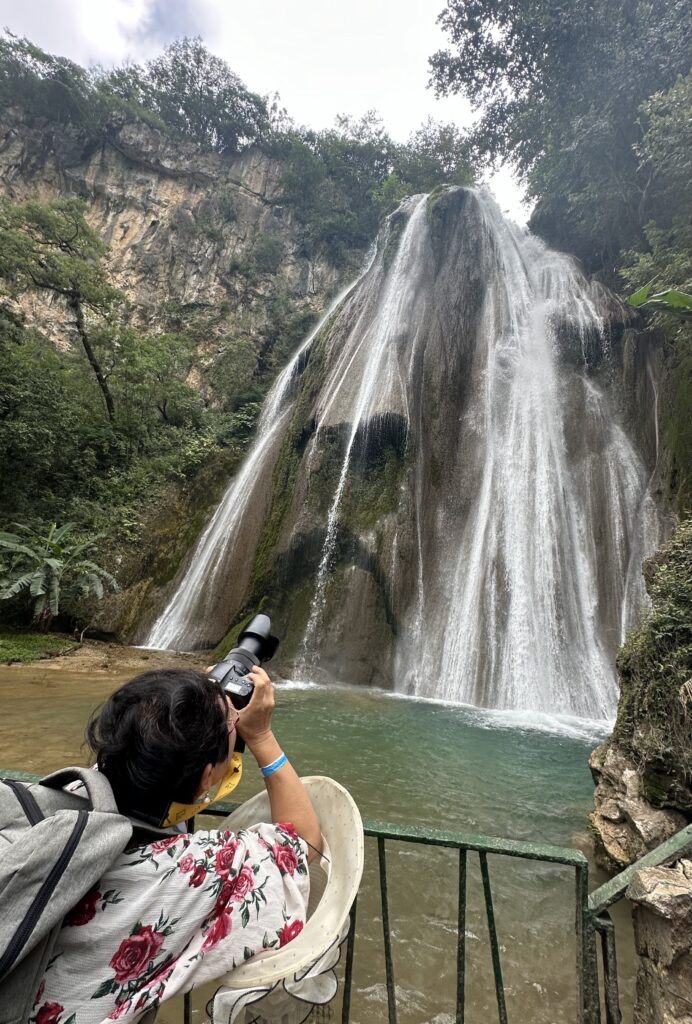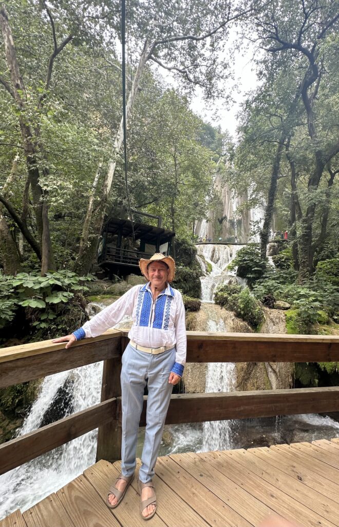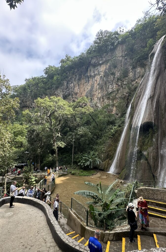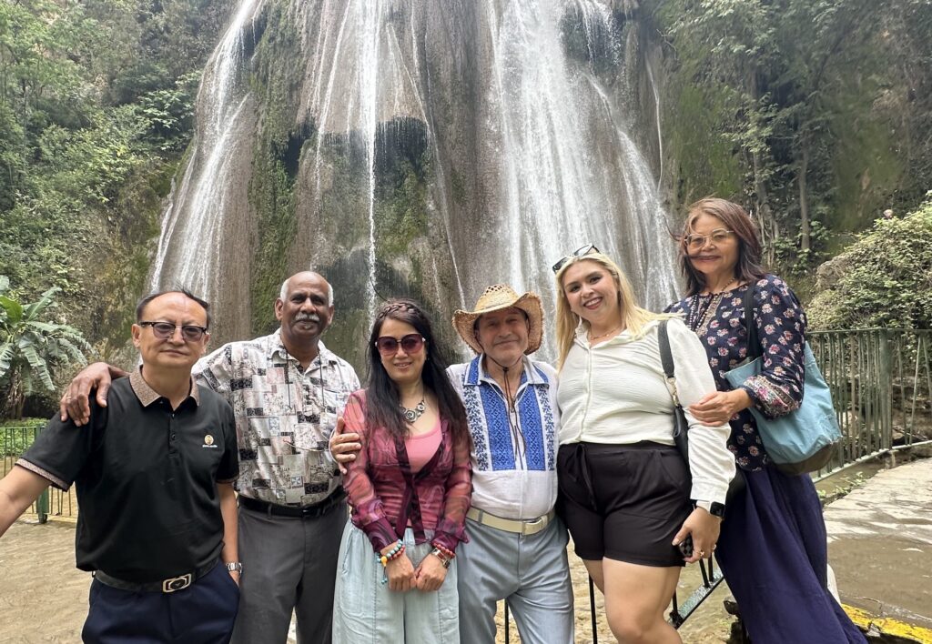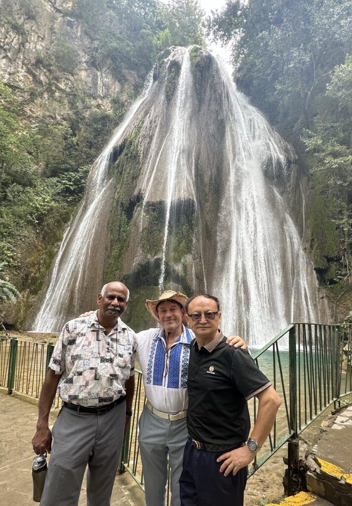 (作者与诗人们在墨西哥圣地亚哥的马尾瀑布)