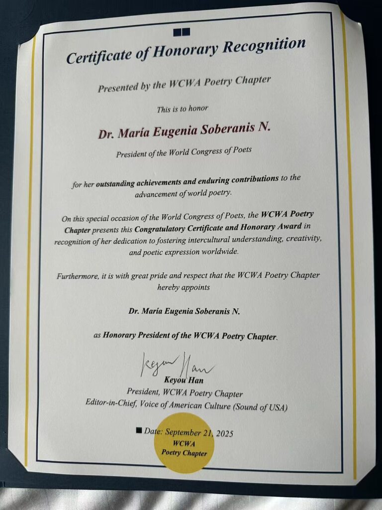 世界诗人大会主席:玛丽亚·尤金尼娅·索贝拉尼斯