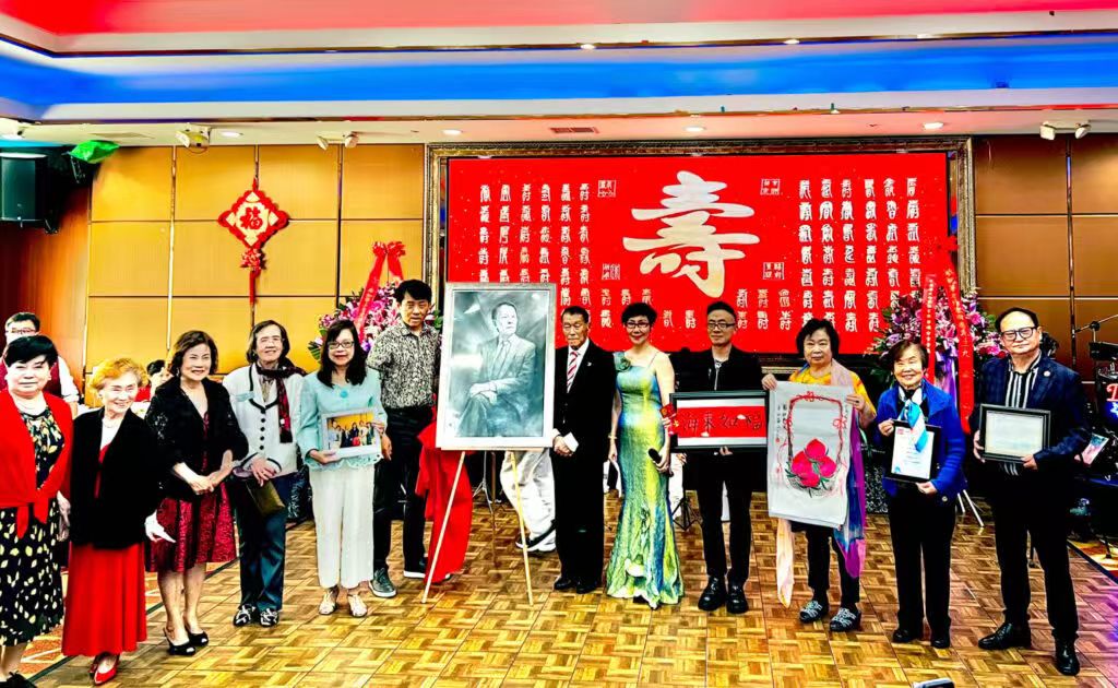 周大哥是一位值得我们敬重的朋友和师长。他的作品不断给我们带来惊喜和感动,他的高尚品格和勤奋治学的精神是吾辈学习的楷模。 周愚和他的太太富美女士 最后,我将两年前在周大哥生日派对上为他写的一首短诗送给周大哥和各位朋友,真诚的祝福大家春节快乐、身体健康、阖家幸福。