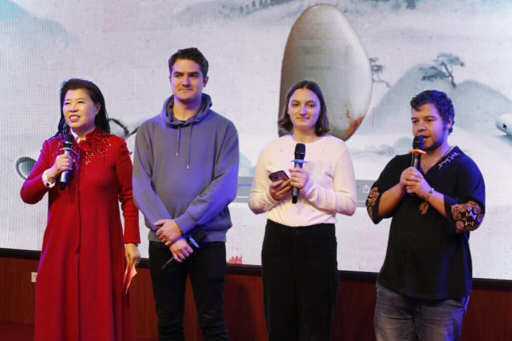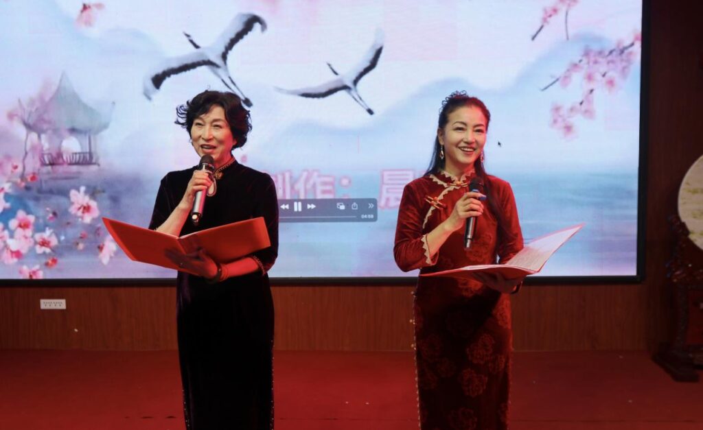 启动仪式后,一场精彩的“诗玉蓝田,丝路同行〞迎新年诗歌朗诵会拉开了帷幕,丝绸之路国际诗歌朗诵艺术团、陕西汉唐文学社、蓝田县诗哥协会、航天四院文协,天朗朗诵协会等团体的诗人和朗诵家们纷纷上台,表演了以蓝田诗玉为主题创作的诗歌。尤其亮眼的是,哈萨克斯坦国家作协原主席乌鲁格贝克.耶斯道勒特、金砖国家作协副主席曹谁以蓝田玉为内容创作的诗词被朗诵家贞礼和路光勋用中英文朗诵,引起了大家的极大兴趣;而来自阿根廷的留学生拉玛,罗马尼亚的留学生秋寒,摩尔多瓦的留学生林安与王芳闻同台朗诵了一组唐诗:李白《静夜思》、王维《红豆》《竹里馆》、李商隐《锦瑟》,赢得了一阵阵掌声。解莉芬、王芳闻、陈红、党端婧、王湘萍、沈巩利、伏萍、刘惠民、沈会侠、琳子等诗人创作的蓝田玉主题诗歌,通过孔裔章子、红菱、寇荷驰、李斐、伏玲等诗人及朗诵家的深情演诵,让大家沉浸在美玉妙韵的诗歌盛宴中。庞军、沈琳国两位知名音乐人的精彩演唱赢得在场嘉宾阵阵掌声。朗诵会由知名主持人李斐、庞军主持。