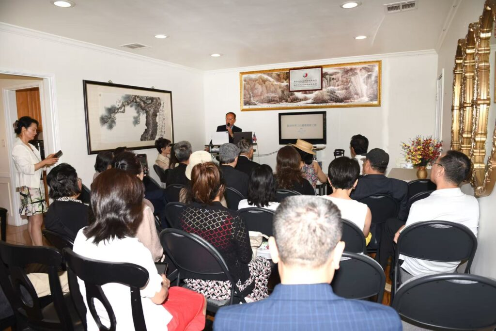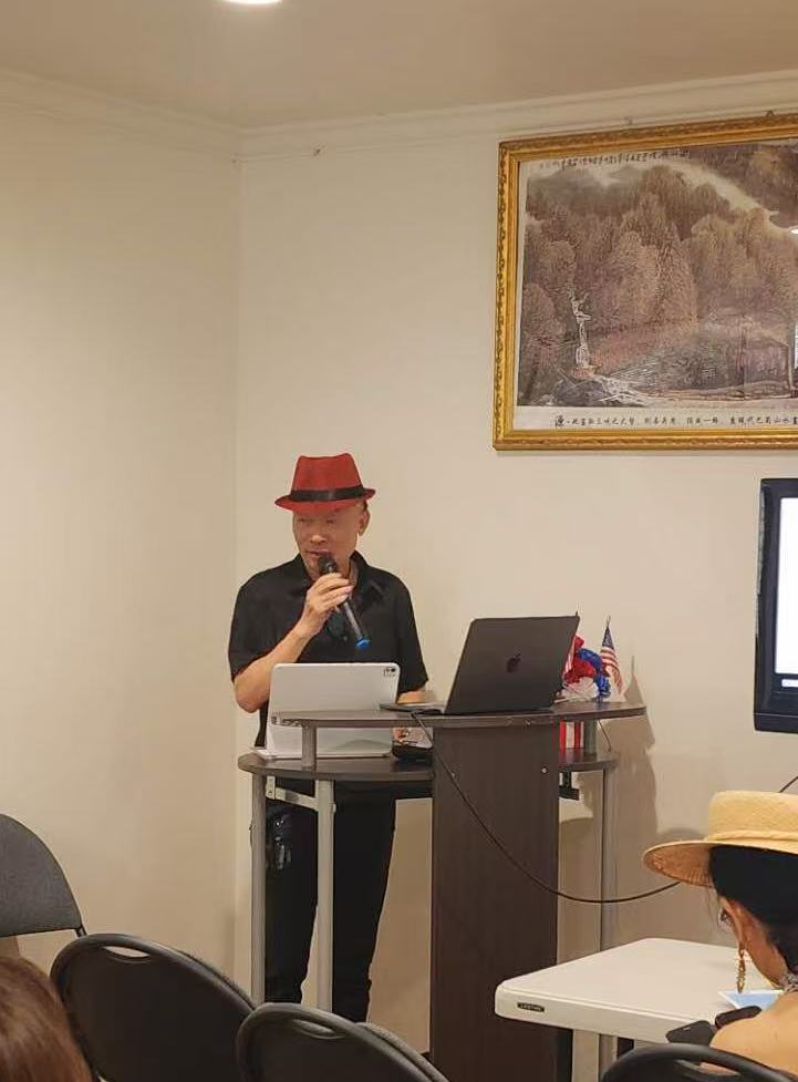 作为一位长期活跃于中美文化交流一线的学者,刘教授不仅是东洛杉矶学院的中国语言文化终身教授,亦担任美西华人学会会长、北美南加州写作协会副会长,其讲述兼具文化视野与人文温度。此次讲座由美洲文化之声总编、世界华文诗歌学会会长韩舸友主持,吸引了近五十位中美文化界人士前来参与,现场交流热烈、思维碰撞不断。