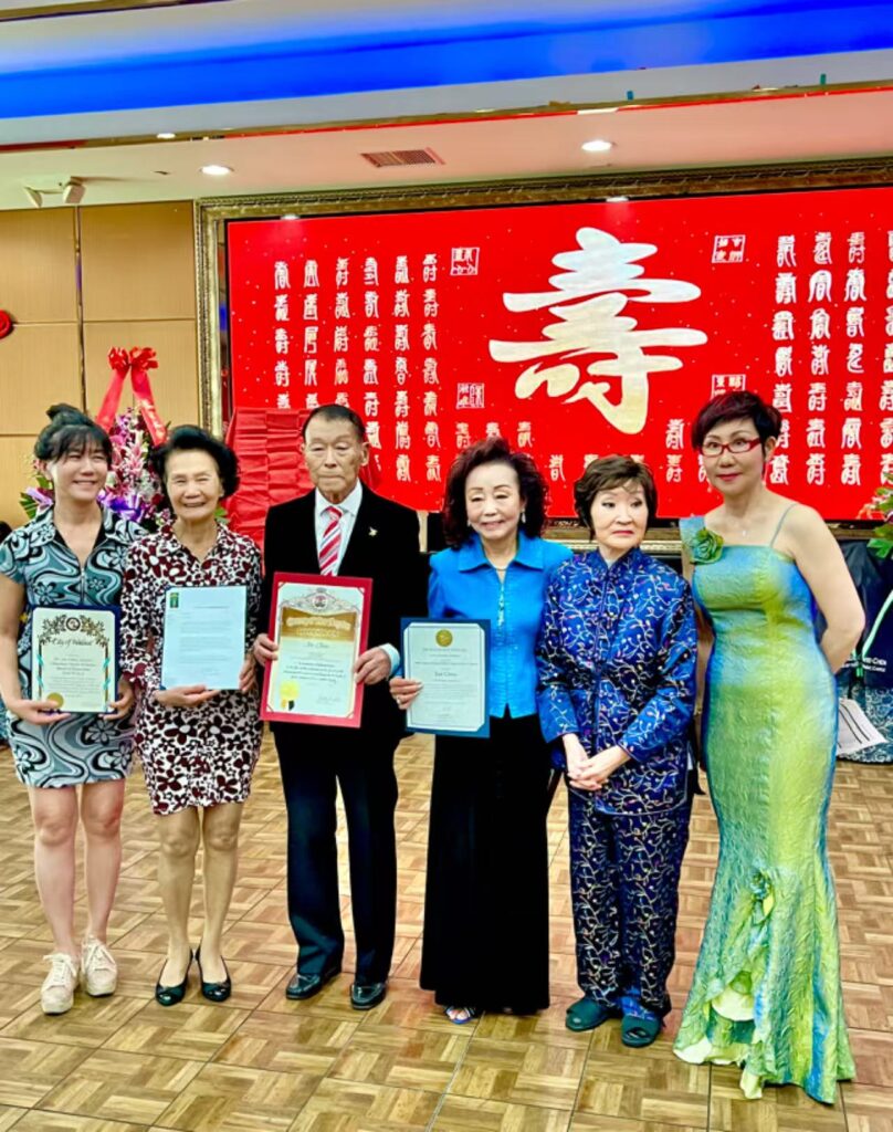 驻洛杉矶台北经济文化办事处宋友潘组长、华侨文教中心副主任颜国裕也向大会致以热烈祝贺。与会嘉宾还包括 Cerritos 市前市长胡张燕燕(今年拟参选加州众议员)、南加州中国大专院校联合校友会会长叶竹青、2007 年候任会长罗再陵、北美洛杉矶华文作家协会创会会长蓬丹、南加州中文学校联合会前会长何均利、著名电视节目主持人高光勃、画家何念丹、作家何森、八年抗战历史研究会会长于德昌、前立法委员营志宏、前空军黑猫中队队长卢锡良,以及社区侨领郑莲云、屠忠余、彭继强、汪忠长、孔宪诏、段相蜀、李定霸、游芳悯、吴黎耀华等。