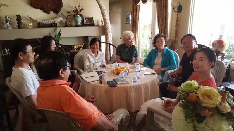 张大姐是国民政府著名将领张治中先生的小女,曾经随父亲在重庆待了八年,直到抗日战争胜利才迁回南京。她告诉我,1949年4月20日国共谈判破裂后,她和母亲并不是电影描写的中共早就把他们接回北京,而是在机长的帮助下,偷偷上了从上海起飞,准备去北京接谈判代表的飞机到北京的。1983年移民美国后,一直从事公益活动,为美中两国人民的友好交往做出了突出的贡献,多次登上天安门城楼参加国庆观礼活动。现在虽然八十七岁高龄,仍然驾车出入各种社交场合,与年轻人共舞探戈,下腰的动作简直让人羡慕。