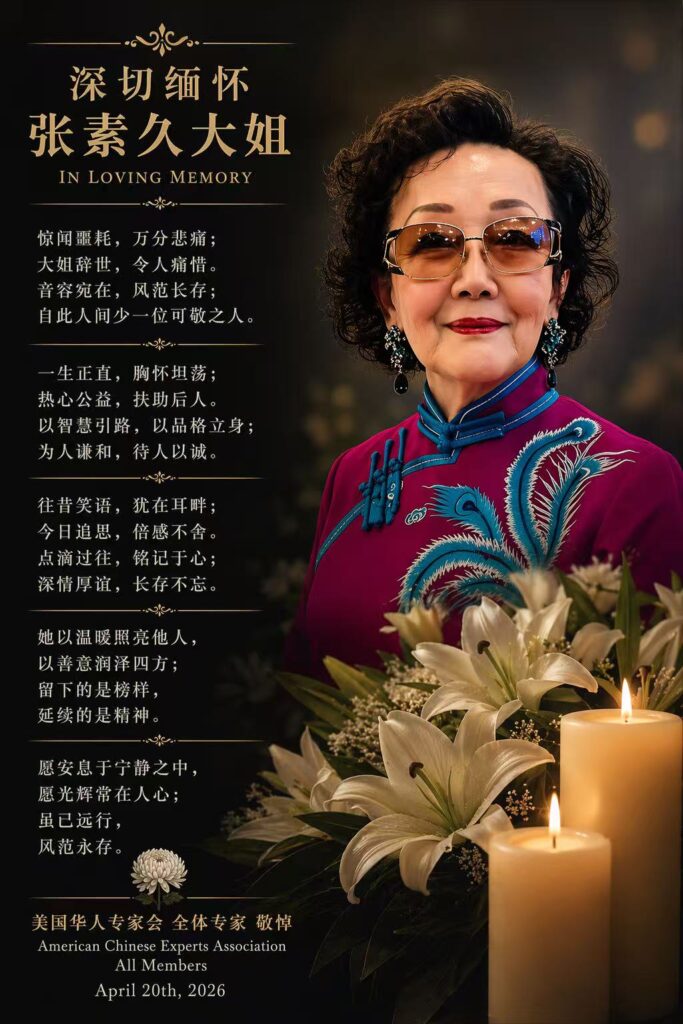 张素久大姐在91岁高龄之际安详辞世,走得平静而从容,也随之带走了自1934年出生以来所经历的历史故事——不仅是中华民国与中华人民共和国近百年的风雨沉浮、兴衰荣辱,也见证了中美两国长达77年的交流与变迁。为了传播中华文化、促进两国人民的友谊,她奉献了毕生心血,成为海外侨胞中最受敬重的爱国侨领之一。