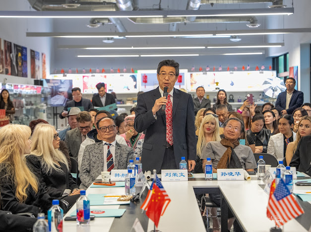 原以为只是一次小范围的交流,没想到现场竟汇聚了近百位来自政界、商界、学界、文学艺术界和新闻界的朋友。甚至还有二十多位来自好莱坞的著名演员和导演。中外朋友汇聚一堂,温馨和谐、气氛友好热烈。