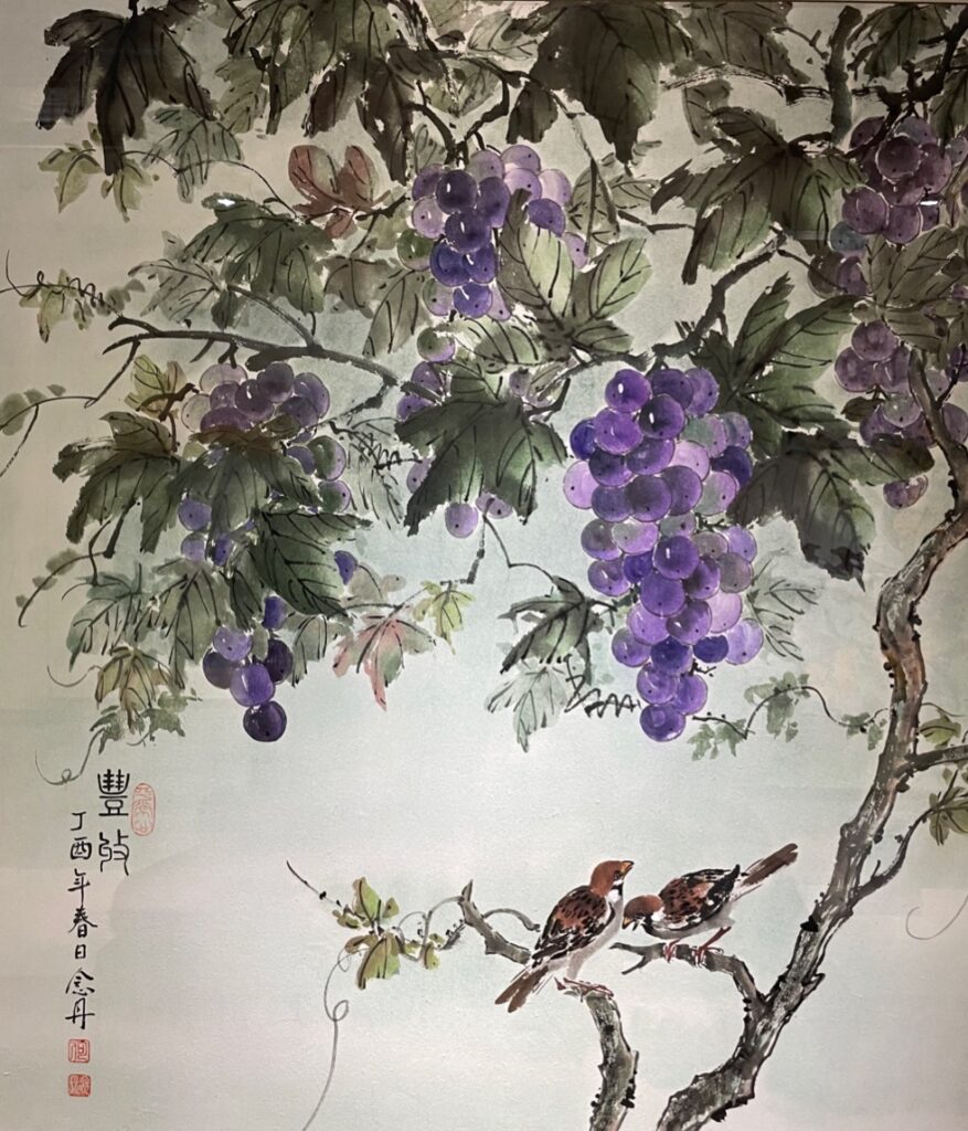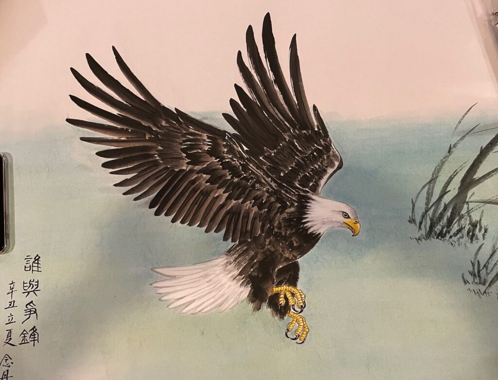 念丹老師在佛誕節舉行書畫大展, 表現了對星雲大師的景仰, 也是大家對星雲大師一種最好的追思. 佛光普照三千界 法水長流五大洲 這是星雲大師親自為佛光山寫的一副對聯, 如果說過去是願望的話, 今天便是現實了. 今年的5/26佛誕節, 好友何念丹老師在洛杉磯佛光山西來寺, 受邀舉辦《尊重生命, 回歸自然》藝術展, 可以說是功德無量. 您看, 念丹兄筆下的動植物世界, 無論是喜鵲還是蝴蝶, 無論是雄鷹還是老虎, 無論是麻雀還是魚兒, 無論是梅花鹿還是奔馬,一筆一劃都充滿了敬天順地的自然法則, 人類和大自然和諧共存的氛圍. 那應該是一種對現代人類啟迪的畫面.