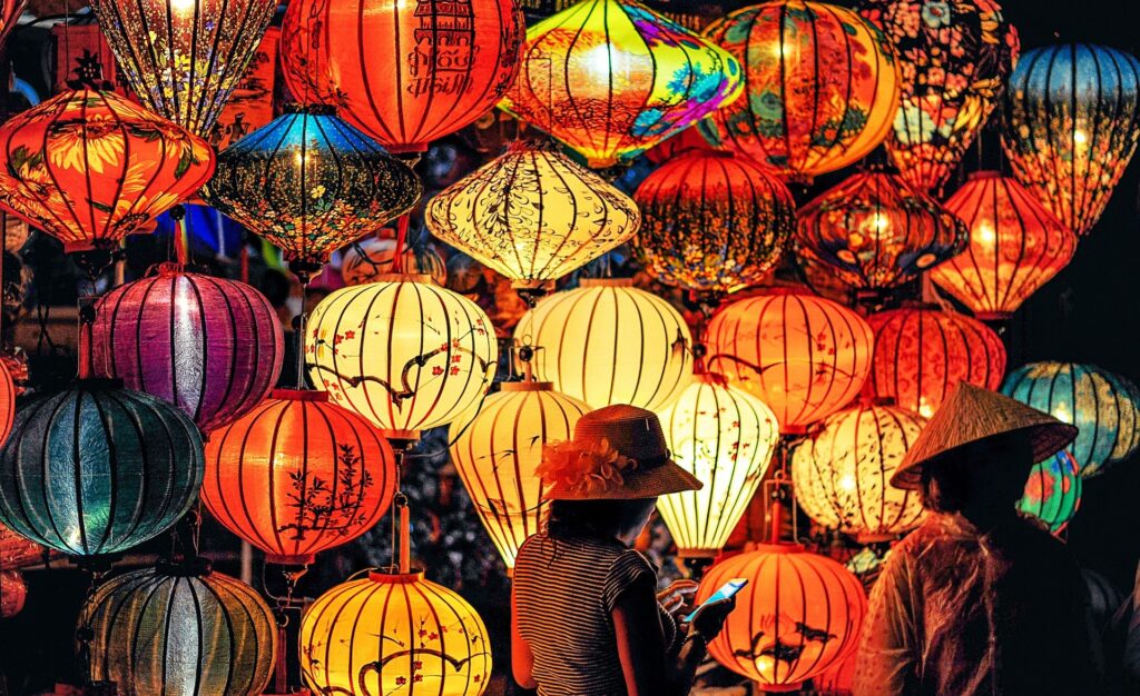 一串串红灯笼,跨过大桥