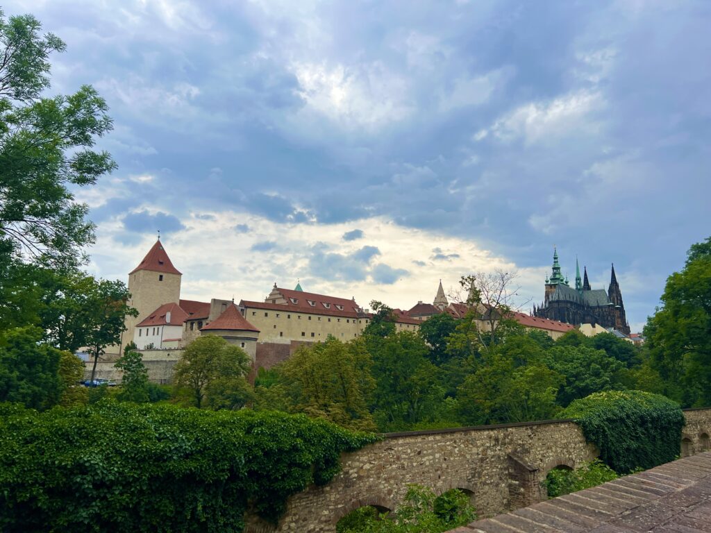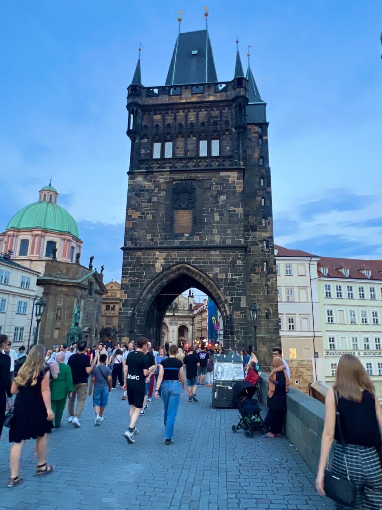 我此行最後一站,是捷克首都布拉格。它是「千塔之城」,是我此行城市中尖塔最多的地方。整個天際線,高塔密佈。布拉格查理大橋由來自盧森堡家族的神聖羅馬帝國皇帝查理四世建造。傳說中,查理大橋是在1357年9月7日早上5點31分開始興建;而且,查理四世還親自放下了第一塊磚。興建時間的精確度對查理四世是很重要的,因爲他非常地相信數字學;而1357 97 531是迴文,他堅信查理大橋會因此而有好運。這座橋的興建用時45年,在1402年完工。建造者在用來粘合石塊的灰漿中加入了雞蛋,以使橋樑更加堅固。大橋長516公尺,寬約10公尺,16個橋拱擁有防冰裝置,兩端有3座橋塔,其中兩座位於布拉格小城一側,一座位於布拉格老城一側。老城橋塔被認爲是世界上最令人讚嘆的世俗哥特式建築之一。橋上安放有30座雕塑,其中多數爲巴洛克風格,豎立於1700年前後,不過現在看到的都是複製品。一位街頭藝人正在橋上演奏烏克蘭的傳統樂器班杜拉琴,不知道她是捷克人還是遠避家鄉戰火的烏克蘭人。若是烏克蘭難民,你的家鄉可好?你的親人是否得安寧?