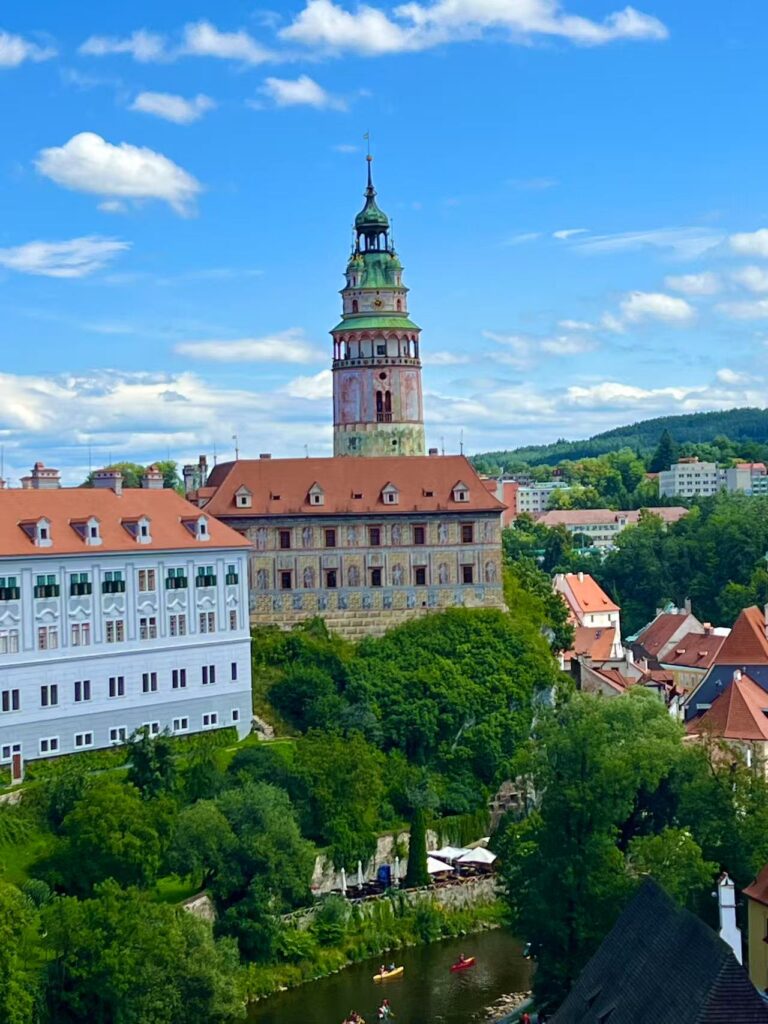 波希米亞平原南部距離布拉格三小時車程,有一座名叫契斯基庫魯姆洛夫 (Český Krumlov) 的小鎮,號稱是捷克最美麗的中世紀古城。這裡也是世界文化遺產。位於伏爾塔瓦河畔,處在布拉格的上游,河水在城區蜿蜒曲折。人們在河上泛舟、漂流。藍天白雲下,青山綠水間,有800年的古堡做背景,真是人間最美的一幅圖畫。這裡的城堡,仅次于布拉格城堡,在波希米亞地區,屬第二大规模。从伏尔塔瓦河畔仰望高聳入雲的城堡和城墙,能感到一种震撼力。城堡建于13世纪,此后又经过陆续扩建,成为一个各个时代的建筑风格巧妙融合在一起的大型建筑群。