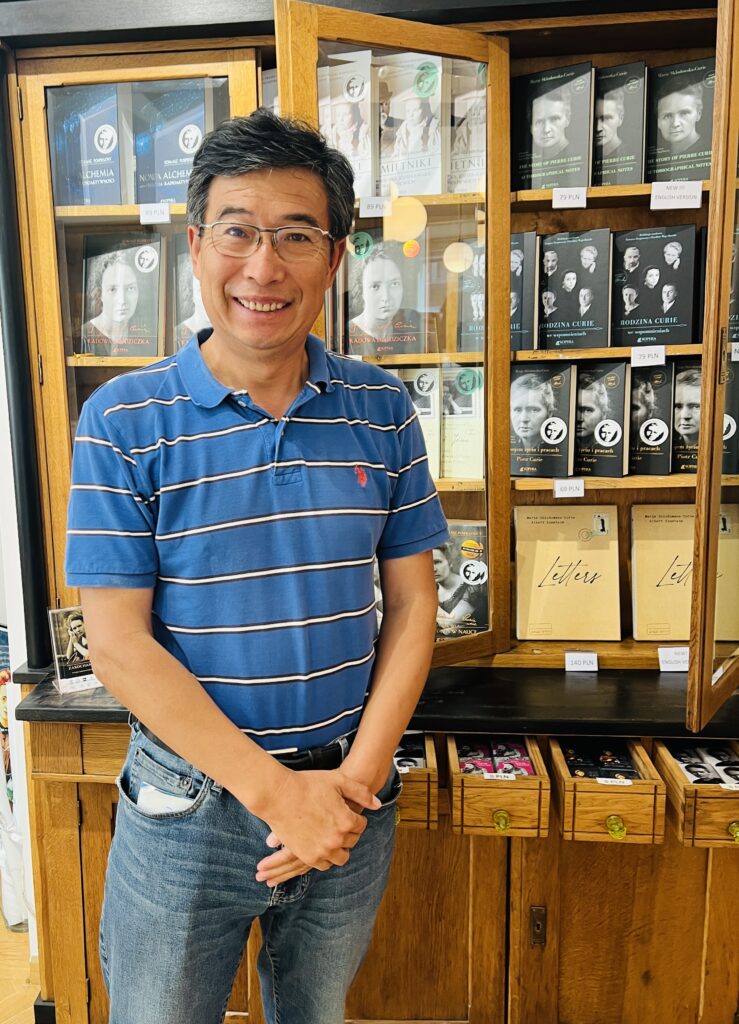 在當日的訪客留言簿上,密密麻麻寫滿了各種文字的留言,我看還沒有中文的,就提筆寫下了「向偉大的科學家致敬」。居里夫人的簽名,和她的人一樣,秀氣可愛。我在紀念品商店,進行了此次旅程中唯一一次的「血拼」,買了25隻印有居里夫人簽名的筆,準備帶回洛杉磯送給藝文界的好朋友們,希望朋友們用這支筆,記錄精彩的人生,寫出更多更好的傳世之作。