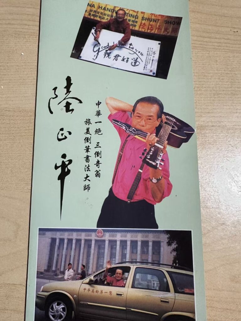 陸大師這位倒筆如有神、倒閱如流水、倒行爬山如走平地。人稱三絕奇翁、聞名海內外2015時當旅居美國洛杉磯。我們有緣相交獲餽贈一筆倒舞墨寶後、時蒙指導教誨。成為忘年之交好友。他並屬我人生歷程中的一位尊敬欽佩長者之一。