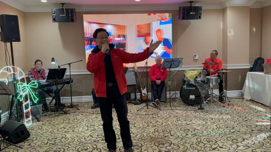 為增加節日喜樂氣氛,協會特意邀請前理事、著名的時事評論員薛永康帶領「時代樂團」現場演奏演唱聖誕及台灣經典懷舊歌曲。同徐永泰博士一樣,薛永康也是將門之後,其父薛敏泉中將與徐思賢將軍同期,也是黃埔六期畢業。永康兄幾十年來筆耕不輟,隔三岔五就在北美最富盛名的「世界日報」發表評論文章,內容涉及古今中外的政治經濟、政策法規、日常生活。針砭時弊,文筆鋒利。悲天憫人,關心百姓疾苦,每篇文章都充滿真知灼見,深受讀者歡迎。